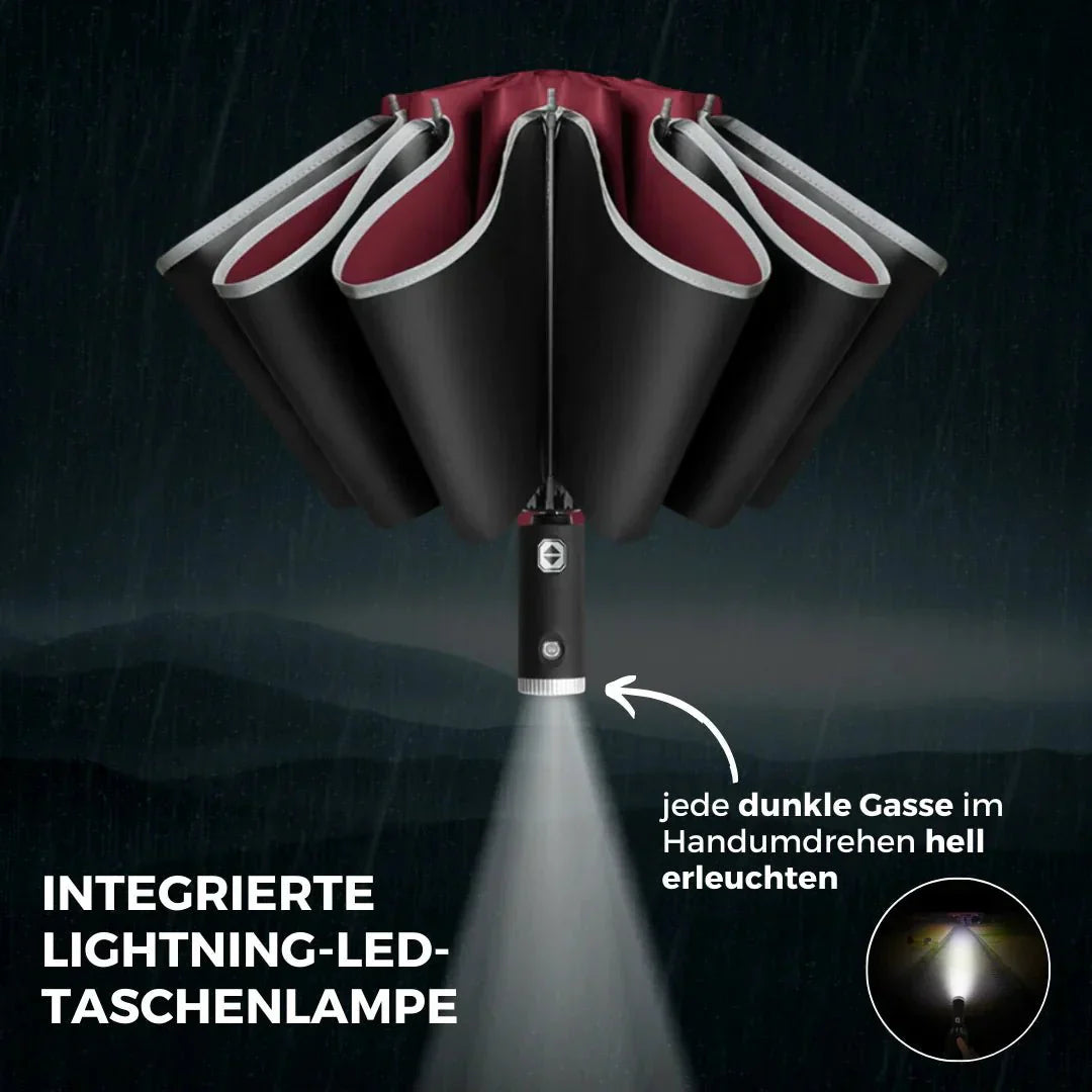 Ein weiteres Feature dieses Schirms ist die integrierte Lightning-LED-Taschenlampe, mit der sich jede dunkle Gasse im Handumdrehen hell erleuchten lässt, für maximale Sicherheit bei Spaziergängen in der Nacht oder bei Dämmerung.