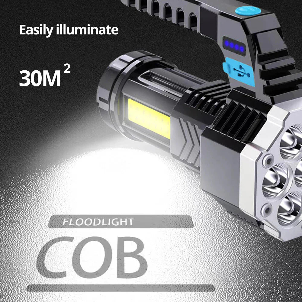Die Wiederaufladbare LED-Taschenlampe ist die perfekte Wahl für alle, die eine zuverlässige und leistungsstarke Beleuchtung benötigen. Mit 7 Hochleistungs-LEDs, einer seitlichen COB-Lichtquelle und einem wiederaufladbaren Akku ist sie ideal für Camping, Notfälle und den täglichen Gebrauch. Wasserdicht und kompakt – für maximale Sicherheit und Komfort überall!